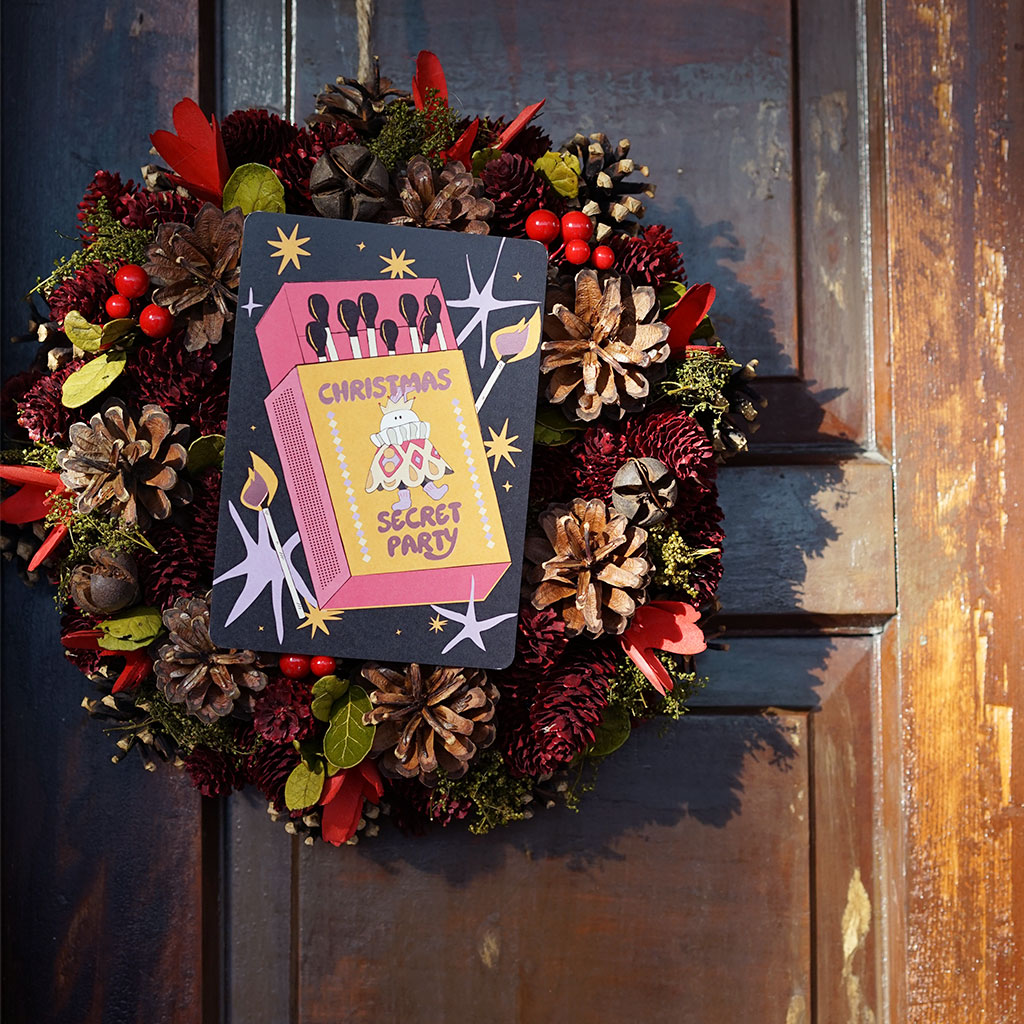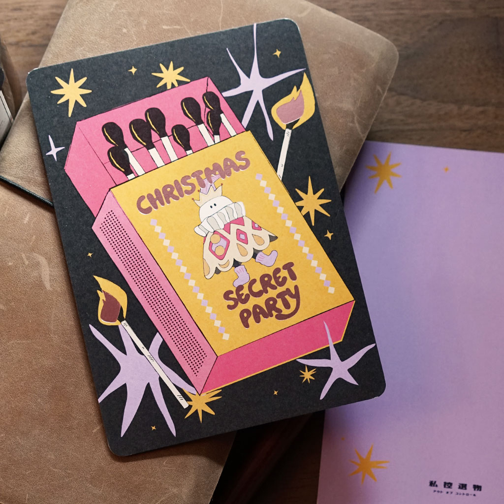 私控設計|聖誕派對插畫燙金明信片